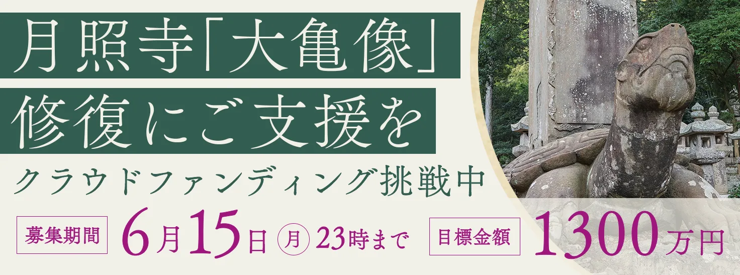 このたび月照寺では、大亀像(寿蔵碑)の修復のため、クラウドファンディングによるご支援の募集を開始いたしました。